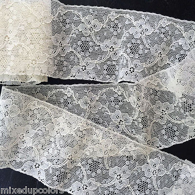 #2 Antique Vintage Wide French Alencon Floral Lace Trim Edge Doll Bear Dress Yds