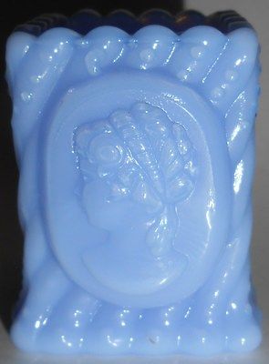 Vintage Blue Milk glass square Cameo toothpick / match holder opaque FAC antique