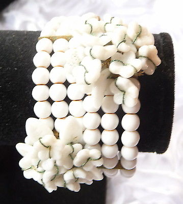 Title (ebay affiliate link): Vintage White Milk Glass Beaded Wrap Bracelet w/Flowers Gold Spacers Bangle NR