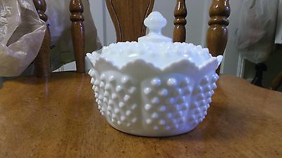 VINTAGE FENTON HOBNAIL WHITE MILK GLASS COVERED CANDY DISH