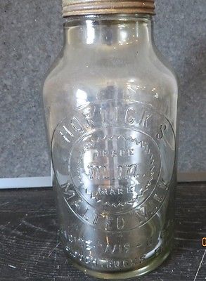 ANTIQUE HORLICK'S MALTED MILK GLASS JAR W/ ORIG LID