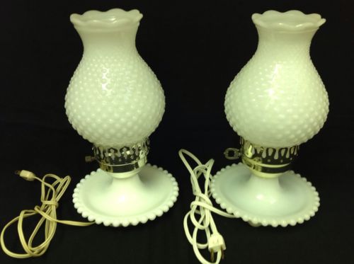 Pair Vintage Hobnail Milk Glass Electric Table Lamps