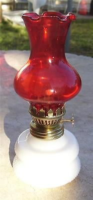 PRETTY VINTAGE MILK GLASS & RUBY RED KEROSINE OR OIL LAMP
