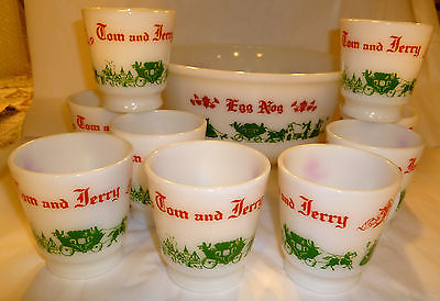 9 AH PUNCH BOWL Tom & Jerry Christmas Egg Nog Milk Glass Cups Carriage