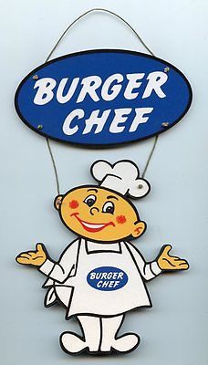 BURGER CHEF BOY FOOD ADVERTISING WOOD WALL KITCHEN PLAQUE VINTAGE SIGN