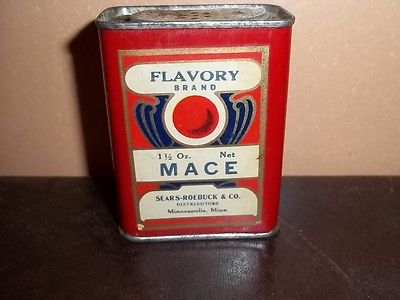 Title (ebay affiliate link): Vintage Tin 1.5 OZ. " FLAVORY MACE " By Sears - Roebuck & Co. Paper Label