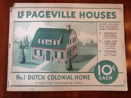 Title (ebay affiliate link): Vintage LePageville House No. 1 Dutch Olonial Home Cardboard house-never opened
