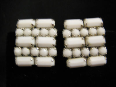 vintage weiss white milk glass beaded clip-on earrings