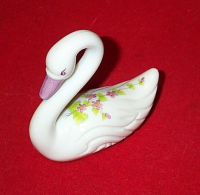 ADORABLE FENTON HAND PAINTED VIOLETS MILK GLASS SWAN