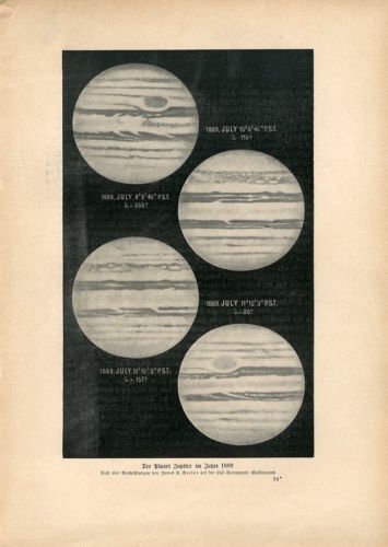 c1900 JUPITER PLANET in 1889 ASTRONOMY Antique Litho Print Kraemer