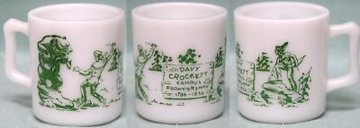 1950’s Davy Crockett Milk Glass Mug Green color images