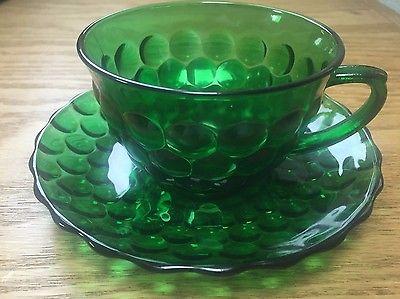 Title (ebay affiliate link): Anchor Hocking Forest Green Bubble Pattern Coffee/Tea Cup and Saucer