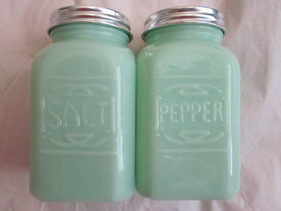 Title (ebay affiliate link): Jadeite REPRO Green MINT Vintage EMBOSSED MILK Glass Salt & Pepper Shaker Set