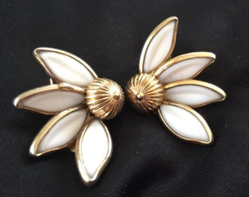 Title (ebay affiliate link): Vintage estate Crown Trifari Poured Milk Glass Half Daisy clip Earrings