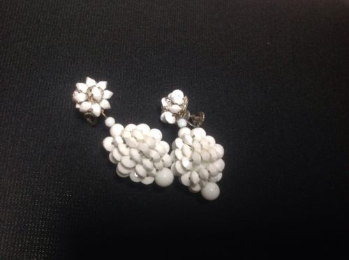 Title (ebay affiliate link): Vintage Miriam Haskell White Milk Glass Dangle Runway Screw Back Clip Earrings