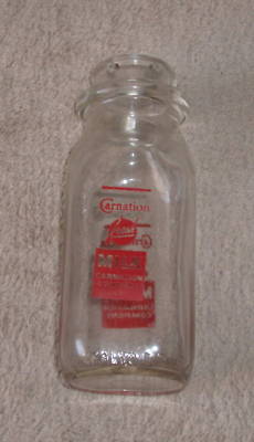 Nice Carnation 1/2 Half Pint Glass Milk Bottle Dairy