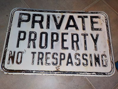 Title (ebay affiliate link): ANTIQUE PRESSED METAL ENAMEL STREET SIGN PRIVATE PROPERTY NO TRESPASSING VINTAGE