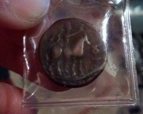 Title (ebay affiliate link): ANCIENT INDO-GREEK SILVER COIN horseman AZES II 35 BC-5 AD zeus nike scepter VG