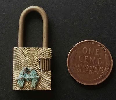 Vintage Solid Brass Working Mini Padlock Lovebirds Charm Pendant