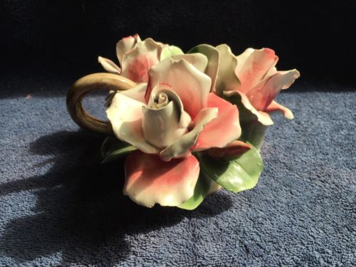 Vintage Capodimonte Italy Rose Flowers Candle Holder