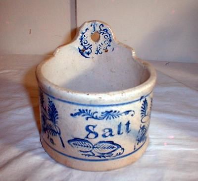 ANTIQUE DECORATED STONEWARE SALT GLAZE SALT BOX