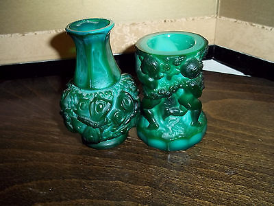 Czech Art Deco Malachite Glass Vase Curt Schlevogt Cherubs Plus One!
