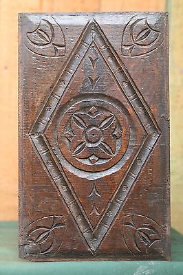 SUPERB 17thC WOODEN OAK PANEL WITH TUDOR ROSE WITHIN DIAMOND CARVING c1680s