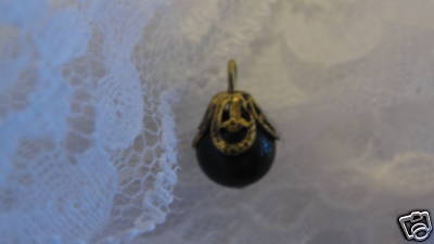 ANTIQUE BRASS GOLD VINTAGE BLACK PENDANT NECKLACE!