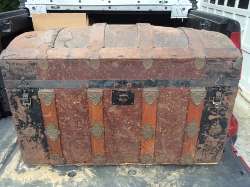Title (ebay affiliate link): ANTIQUE STEAMER TRUNK VICTORIAN DOME TOP BRIDAL STYLE WOOD/METAL CHEST