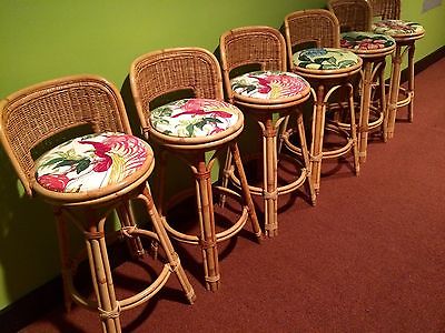 Title (ebay affiliate link): 6 VINTAGE wicker/rattan swivel bar stools with back