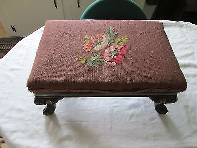 Vintage Needlepoint Embroidery Small Wooden Foot Stool POKER GAME INTERIOR