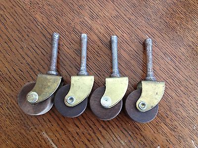 Vintage Wooden Wheel Casters - Set of 4 1 1/8 inch wheels 1 5/8 in rod