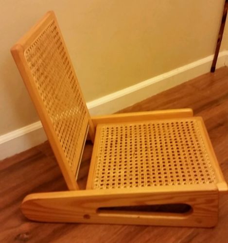 Vintage Caned Wood Folding Beach Chair Excellent Condition