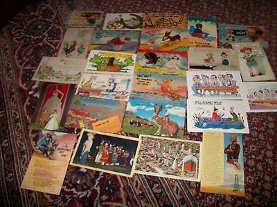 VINTAGE LOT OF RISQUE, HUMOR, FISHING, WOOD, WEAVE, EARLY 1900 POSTCARDS