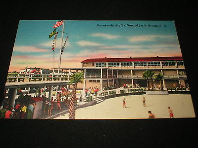 MYRTLE BEACH South Carolina / Boardwalk & Pavillion Vintage Linen Postcard