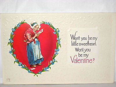 Title (ebay affiliate link): 1910 EMBOSSED POSTCARD WONT' YOU BE MY VALENTINE? GIRL IN HEART WITH NOTE