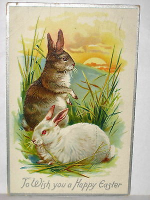 1910 TUCK POSTCARD TO WISH YOU A HAPPY EASTER, BROWN AND WHITE BUNNIES