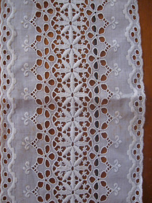 Title (ebay affiliate link): VINTAGE COTTON EMBROIDERED LACE REMNANT~NICE DOLL TRIM~