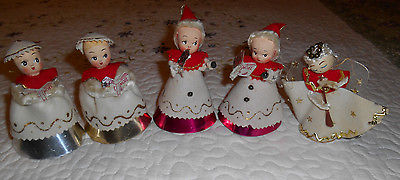 Title (ebay affiliate link): 5 Vntg Spun Cotton Foil Christmas Carolers Angel Ornaments Mercury Glass Japan