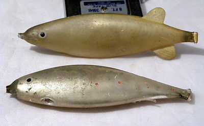 Pair Antique German Blown Glass FISH Ornaments Silver & Gold 1915