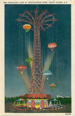 Title (ebay affiliate link): LINEN PARACHUTE JUMP AT NIGHT AT STEEPLECHASE PARK CONEY ISLAND - BROOKLYN NY