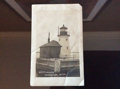 Title (ebay affiliate link): RPPC Lighthouse, Cheboygan, Mich., 1911 Divided Back, Posted