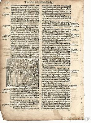 1577 LEAF FROM HOLINSHED CHRONICLES OF SCOTLAND WOODCUT