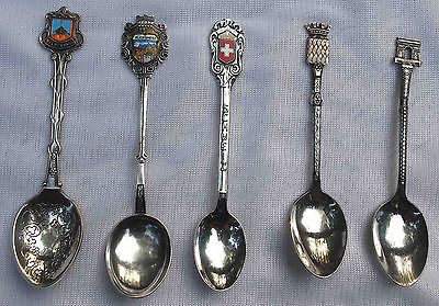 Lot of 5 Silver Souvenir Spoons: Monaco, Paris, Switzerland, England and Germany
