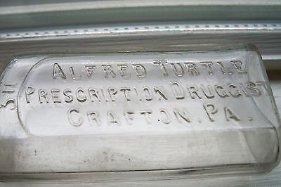 Rare, Alfred Turtle, Druggist Bottle, Crafton, Pa. - Circa - 1890's