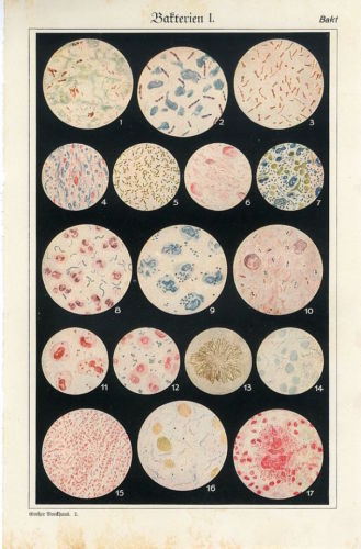 Title (ebay affiliate link): 1920s BACTERIA UNDER MICROSCOPE Antique Litho Print