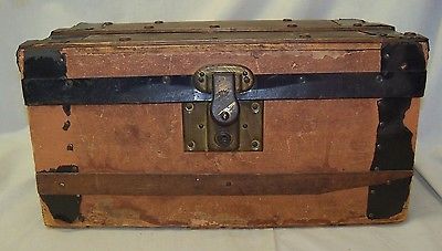 Title (ebay affiliate link): Old Antique Wooden Flat Top Child's Steamer Trunk w/ Metal Accents
