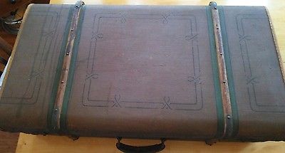 Vintage suitcase art deco design wood trim