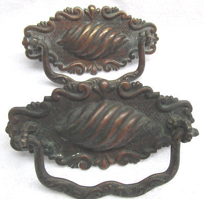 ANTIQUE VINTAGE Copper FURNITURE CABINET DRAWER PULL DROP HANDLE KNOBS LOT OF 2