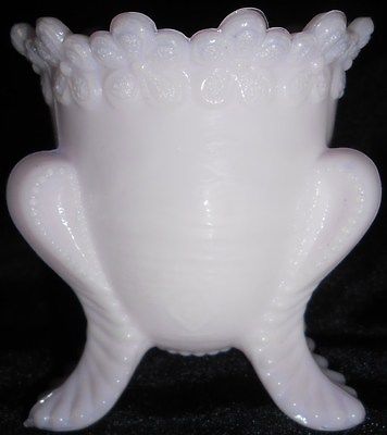 Title (ebay affiliate link): Vintage Boyd Pink Milk glass toothpick holder 3 toe flowers crown Tuscan Vermont